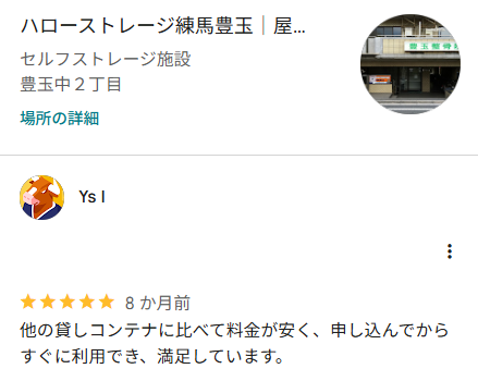 他の貸しコンテナに比べて料金が安く、申し込んでからすぐに利用でき、満足しています。